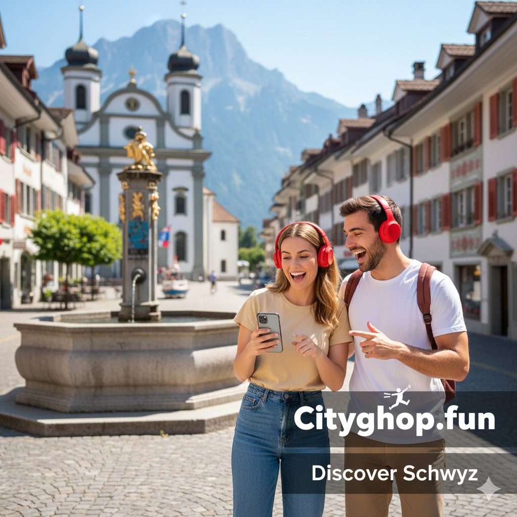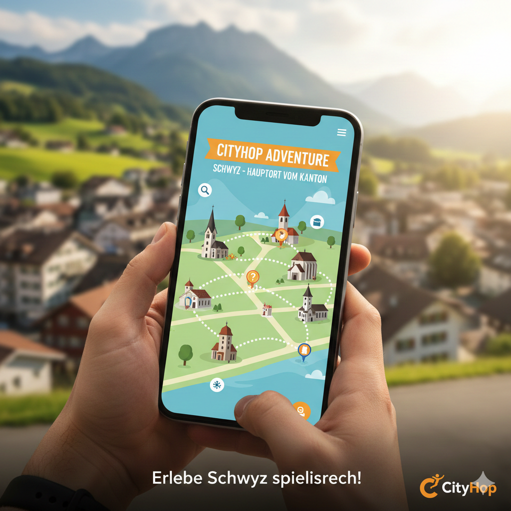 Erlebe Schwyz wie nie zuvor! Unsere interaktive Schnitzeljagd führt dich zu historischen Highlights, geheimen Schätzen und versteckten Ecken der Stadt – von der mächtigen Pfarrkirche St. Martin über den Schatzturm bis zum Bundesbriefmuseum und dem Forum der Schweizer Geschichte.
